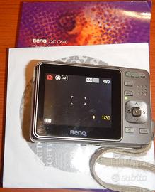 Fotocamera digitale perfettamente funzionante,usata ma come nuova. Questa fotocamera integra un sensore da 6 Megapixel effettivi, che garantisce una notevole definizione delle immagini. In più, Benq DC C640 assicura la miglior qualità possibile,nella confezione troverete, la C640,la sua custodia,cavetto tv ,dischetto per pc, il suo manuale originale,la sua scatola. Funziona con due batterie stilo, è stata usata veramente poco.