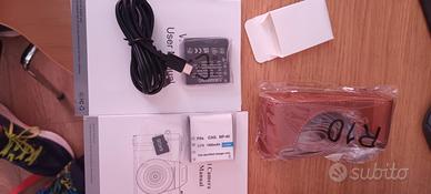 Compresa di una batteria di ricambio, card da 64 gb, laccio in cuoio per il trasporto.