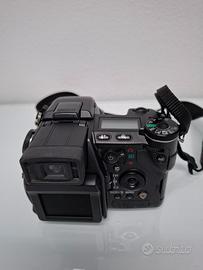 Fotocamera vintage, obiettivo di eccelsa qualità 28-200 f2,8-3,5 flash incorporato, sensore CCD da 2/3″ da 8 megapixel, display basculante, stabilizzazione, compensazione esposizione, AF singolo, AF continuo e messa a fuoco manuale, caricabatteria con 2 batterie + flash professionale Minolta numero guida massimo di 56 (a ISO 100) solo questo vale 70-80 euro. CompactFlash Lexar Professional 2GB, borsa a tracolla originale Minolta. Tutto perfettamente funzionante. Le specifiche complete sia della macchina che del flash esterno si trovano tranquillamente in rete, anche i prezzi.