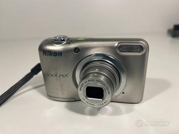 Fotocamera digitale Nikon coolpix A10 in buone condizioni estetiche e perfettamente funzionante, con qualche segno dovuto al normale utilizzo come da foto. ✔️La fotocamera è stata testata in tutte le sue componenti per garantire piena funzionalità e sicurezza. Compatta, semplice e affidabile con sensore da 16MP, zoom ottico Nikkor 5x, schermo LCD e modalità automatiche di scatto Venduta con scheda SD generica inclusa, pronta all’uso Utilizza 2 batterie AA (stilo) facili da trovare 📦💨 Spedizione rapida e tracciata con imballaggio accurato e ben protetto Per info o altre foto / video scrivimi pure