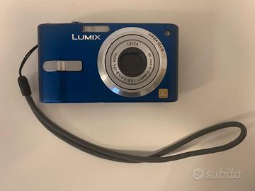 Fotocamera digitale Panasonic Lumix DMC-ftx10 con batteria e caricabatterie. Con una scheda SD da 2gb, cavetti di collegamento e scatola originale con libretto d'istruzioni. La fotocamera ha anche la funzione video riproducibile in definizione HD movie, una lente con zoom 4x e una definizione di 14,1 mp. La fotocamera ha funzioni water prof fino a 3m ed un esercizio di funzionamento fino ad una temperatura di -10.