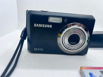 fotocamera compatta Samsung da 10.2 Mega Pixel. Perfetta per amanti della fotografia vintage e dello stile primi anni 2000.