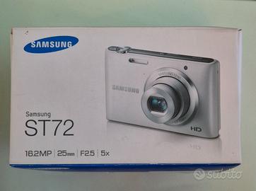 Vendo elegante fotocamera digitale compatta Samsung ST72, usata poco e tenuta in perfetto stato, come mostrato in foto. ● Specifiche tecniche principali: • Sensore: CCD 1/2.3" con 16.2 megapixel effettivi • Obiettivo: Zoom ottico 5x, grandangolare 25mm, apertura F/2.5-6.3 • Display: LCD intelligente 3.0" (75 mm) con regolazione luminosità automatica • Zoom digitale: 5x aggiuntivo • Video: Registrazione 720p • Stabilizzatore d'immagine: Sì, per video stabili • Messa a fuoco: TTL automatica e manuale • Sensibilità ISO: Da 80 in su • Connettività: USB per trasferimento dati • Batteria: Samsung BP70A ricaricabile ■ NOTA: la telecamera funziona, non ha alcun graffio, danno o altra tipologia di problema e verrà fornita con una custodia di protezione, oltre che la sua scatola originale. È fornito anche caricabatterie e cavo di ricarica/trasferimento dati.