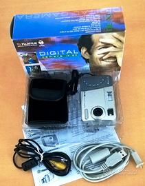 Fotocamera digitale compatta in ottime condizioni. Confezione originale. Completa di tutto quanto previsto nella confezione: Cavetti, CD, Istruzioni, Custodia. Ideale per bambini in quanto semplice da usare. Funziona anche come webcam oppure collegata alla TV.