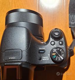 Caratteristiche tecniche: modello DSC-HX400V, 20.4 Megapixel, Zoom ottico 50x, Obiettivo ZEISS Vario-Sonnar® T*, Zoom digitale video 200, Zoom digitale foto 810x, schermo LCD TFT da 7.5 cm, Mirino elettronico, rotazione automatica immagine, scatto continuo, flash integrato con innalzamento manuale, modalità panoramica intelligente, connettività WI-FI, batteria ricaricabile che dura oltre 300 foto, peso 650g.
