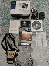 Fotocamera digitale Sony DSC-H55 usata pochissimo, praticamente nuova! Non ha segni di usura o rigate varie. Come da foto viene fornita con tutti gli accessori originali, una scheda SD di memoria da 8Gb (inserita) e in omaggio una comoda custodia a tracolla.