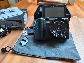 fotocamera digitale tascabile completa di scheda memoria, adattatori USB, cavo ricarica, manuali. funzione wifi per gestione funzioni da smartphone ottima per videomaker e escursioni. nuova con il suo imballo originale.