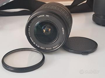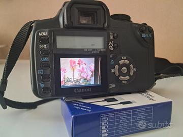 kit fotografico digitale canon eos corpo eos 350d + 2 obiettivi zoom 18-55 efs f.3,5 - 5,6 II zoom tamron 80-210 f. 4,5 -5,6 filtro uv hama 58 mm borsa e tracolla batteria nuova nb2l con caricabatteria