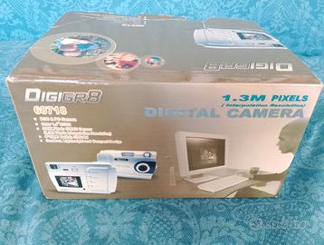 Fotocamera digitale "vintage" dei primi anni 2000, un modello entry-level tipico dell'epoca della transizione al digitale. Caratteristiche principali: - Modello: DigiGR8 Digital Camera (serie compatta) - Risoluzione: 1.3 Megapixel (risoluzione interpolata), ideale per ottenere quell'estetica "Lo-Fi" e nostalgica tipica dei primi anni 2000 (stile Y2K) - Display: schermo LCD posteriore per anteprima e revisione scatti - Mirino: ottico galileiano (utile per inquadrare senza consumare batteria) - Interfaccia: connessione USB per trasferimento dati a PC - Alimentazione: funziona con comuni pile stilo (AA/AAA) - Extra Inclusi: confezione originale, manuale di istruzioni (italiano/inglese), CD dei driver e cavo USB originale Funzionante.