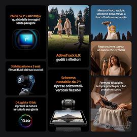 Riprese ultra stabili - Dì addio ai video mossi! L'avanzata stabilizzazione meccanica a 3 assi di Osmo Pocket 3 offre una stabilità eccezionale. Goditi riprese fluide mentre balli, giochi con i tuoi cuccioli o durante delle escursioni.