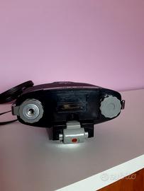Macchina fotografica storica (anni 50) FERRANIA EURALUX 44, progettata per scattare 12 fotografie in formato 4x4cm in bianco e nero o a colori, su un rulletto di pellicola 127. Flash ripiegabile incorporato con riflettore a ventaglio con alloggiamento centrale per lampade illuminanti. Si presenta in ottime condizioni, dotata di libretto d'istruzioni d'uso, e scatola d'imballaggio originale (non in buone condizioni).