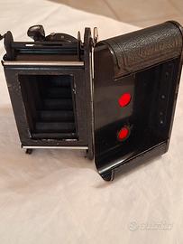 Fotocamera I Connete Frontar a soffietto anni 40 acquistata da un bisnonno in Libia.Ottica Zeiss diaframma (8 16 32)otturatore automatico +posa.,attacco per cavetto flessibile +attacco cavaletto,con custodia.