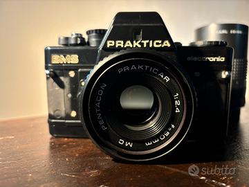 Vendo fotocamera analogica Praktica BMS Electronic in buone condizioni e funzionante. Va soltanto trovata la levetta per aprire lo sportello perché si è svitata e smarrita durante l’utilizzo. Di corredo l obiettivo Praktica 50mm f 2,4 e Carl Zeiss Jena 135mm f 2,8.