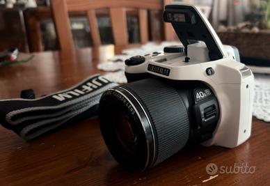 Vendo per inutilizzo fotocamera della fujifilm Fine Pix S8200. Zoom 40x equivalente ad un 24-960 mm f/2,9-6,5 e un sensore BSI-CMOS da 16 Mpx ed ha una raffica fino a 10fg/s e ad alta velocità fino a 120fg/s. Stabilizzatore ottico di immagine. Velocita autofocus 0,3 sec.*1 Scatto continuo a 10 fps alla max risoluzione ( max 10 fotogrammi consecutivi) Tempo di avvio 1 sec., intervallo di scatto 0,5 sec. Video full HD 1080i/60 fps con audio stereo e riprese slow- motion a 480fps*2 Luminoso display LCD da 3” LCD (460.000 pixel) Mirino elettronico (200.000 pixel) Super Macro 1 cm Controlo manuale esposizione (modalità P/S/A/M) Doppio comando della zoom Filtri avanzati, scatto 3D, riprese HDR, panorama 360 Instant zoom e Zoom Bracketing 3 velocita di attuazione zoom con “auto Return Zoom” Alimentazione: 4 batterie alkaline AA, autonomia di circa 300 scatti.