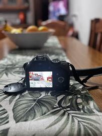La macchina ha circa 8 anni ed è stata usata, presenta alcuni graffi estetici ma funziona perfettamente: zoom, scatto, schermo e menu sono ok.