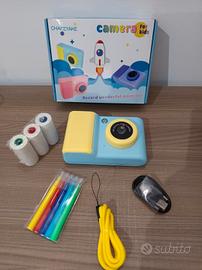 Carta termica a colori】Questa fotocamera per bambini con stampa istantanea migliora la classica stampa in bianco e nero grazie alla carta termica colorata rossa, blu e verde. Il colore della carta determina il colore della foto, rendendo ogni stampa unica. Modalità Fotocamera e Stampa selezionabili con il tasto OK. Una vera fotocamera istantanea per bambini creativa. 【Fotocamera istantanea per bambini】Questa fotocamera istantanea per bambini utilizza la tecnologia di stampa termica avanzata per stampare foto subito, senza inchiostro né toner. Supporta due stili di stampa e tre livelli di densità regolabili. Con filtri, effetti specchio e cornici cartoon, stimola fantasia e creatività dei bambini. 【Fotocamera bambini multifunzione foto e video】La fotocamera per bambini offre foto da 20MP e video 1080P. Include zoom digitale 10x, luce di riempimento, time-lapse, scatto continuo, filtri ed effetti, oltre a 4 giochi integrati. Perfetta per l' uso quotidiano, viaggi e feste, questa fotocamera istantanea per bambini diverte a lungo. 【Ampia memoria e ricarica Type-C】Dotata di scheda SD da 32GB, questa fotocamera per bambini consente di archiviare migliaia di foto e video. La ricarica Type-C è compatibile con power bank, PC e presa a muro. Supporta anche il trasferimento diretto al computer in modo semplice e veloce. 【Regalo ideale per bambini】Lo schermo IPS da 2,4” con riduzione della luce blu protegge gli occhi dei bambini. Il design arrotondato è comodo da impugnare. Batteria da 1300mAh, cinturino e corpo leggero rendono questa