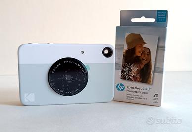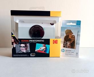 Fotocamera istantanea KODAK nuova (è stata tolta e rimessa la pellicola di protezione dell'obiettivo) con confezione nuova di n.20 fogli di carta termica per la stampa automatica delle foto scattate. Usata una volta per prova tecnica, vendo in confezione originale.