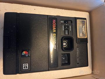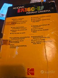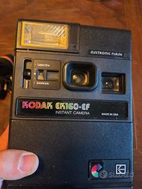 Fotocamera istantanea vintage Kodak EK160-EF, prodotta negli USA a partire dal 1979. Fotocamera istantanea analogica, simile per funzionamento alle Polaroid dell'epoca. Dotata di un flash elettronico integrato (indicato come "Electronic Flash"). Include un selettore "Lighten/Darken" per regolare l'esposizione della foto. Considerato un oggetto da collezione, poiché le pellicole originali Kodak non sono più in produzione da decenni.