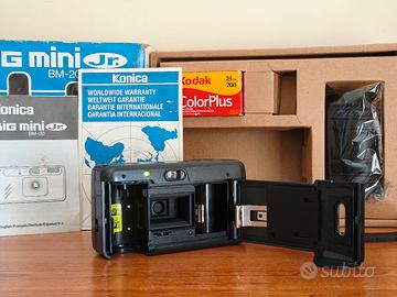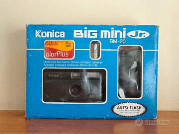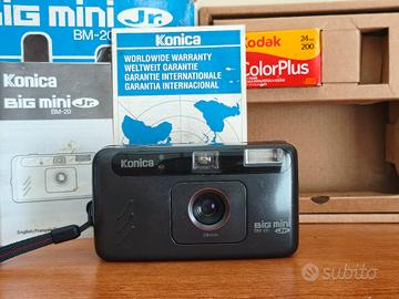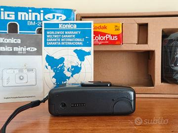 Fotocamera Konica Big Mini Jr. BM-20, un modello compatto e motorizzato. Fotocamera testata , perfettamente funzionante! - Include scatola originale, manuali e rullino Kodak ColorPlus 200. - Custodia per fotocamera inclusa. Tutto nella sua scatola originale! Tag: #sony #olympus #contax #yashica #mju #fujifilm #leica #canon #nikon