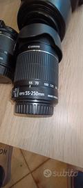 1 fotocamera Canon EOS 1200D 2 borse 1 telecomando flash 1 obbiettivo Canon EFS 18-55 1 obbiettivo Canon EFS 55-250 1 obbiettivo Canon EFS 17-8 5 1 carica batterie con 3 batterie 1 cavalletto tre piedi con custodia