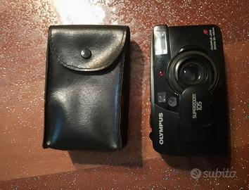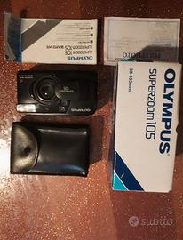 Fotocamera vintage usata funzionante Olympus Superzoom 105, compatta formato 35mm. completa di custodia, libretto istruzioni, cinghia.