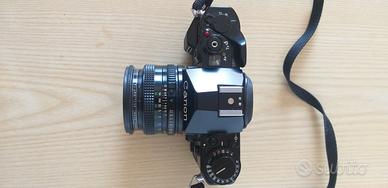 Fotocamera CANON A1 con montato obiettivo CANON LENS FD 1:1.8 50mm - più: un obiettivo CANON LENS FD 28mm 1:2.8 - un teleobiettivo TAMRON SP 70-210mm 1:3.5 1:4/210 70 - un TELECONVERTER 2X TOMRON SP BBAR MC - un FLASCH speed lite 199A - una borsa tracolla REPORTER, il tutto in ottime condizioni.
