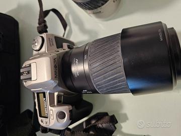 Fotocamera konica minolta in perfette condizioni con af zoom 28-80 più af zoom 75-300 più custodia originale più lampeggiante originale konica minolta più 6 rullini nuovi disponibile spedizione