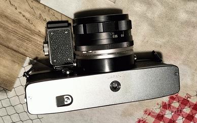 Ottimo stato perfettamente funzionante , obiettivo pulito con diaframma privo di grasso. L'esposimetro richiede una batteria al mercurio da 1,35V, non piu' reperibile, testato con una da 1,55V, risulta funzionante, ma probabilmente inpreciso.