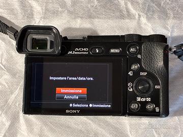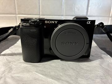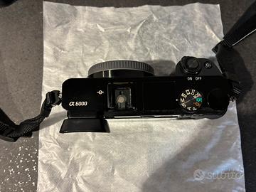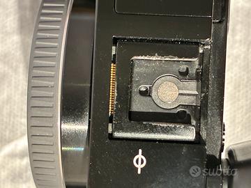 Fotocamera Mirrorless APS-C Sony Alpha 6000 37000 scatti Solo corpo macchina, senza obiettivo. Perfettamente funzionante ma presenta un difetto estetico in corrispondenza della slitta flash che risulta piegata all’interno ma che non compromette il funzionamento della fotocamera. Completa dei seguenti accessori: tappo copri sensore, tracolla, conchiglia per mirino, batteria originale NP-FW50, caricabatterie completo di cavo micro usb, manuale, scatola originale.