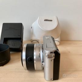 Vendo fotocamera digitale mirrorless Nikon 1 J1 con sensore CMOS da 1 pollice da 10 megapixel, obiettivo Nikkor 10-30mm, registrazione video in full hd e flash a scomparsa. La fotocamera presenta segni di usura ma funziona in modo ottimale. Venduta con caricabatterie, batteria, custodia in pelle originale Nikon e paraluce. Prezzo trattabile