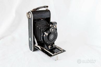 Vendo vecchia fotocamera a soffietto Nagel Librette 65 risalente al periodo 1931/33, azienda assorbita poi dalla Kodak. Formato 120. Funzionante. Soffietto perfetto, bene otturatore e lente ma lo chassis mostra evidenti segni del tempo.