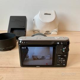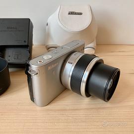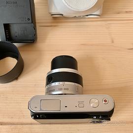 Vendo fotocamera digitale mirrorless Nikon 1 J1 con sensore CMOS da 1 pollice da 10 megapixel, obiettivo Nikkor 10-30mm, registrazione video in full hd e flash a scomparsa. La fotocamera presenta segni di usura ma funziona in modo ottimale. Venduta con caricabatterie, batteria, custodia in pelle originale Nikon e paraluce. Prezzo trattabile