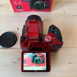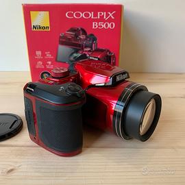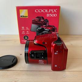 Vendo fotocamera bridge Nikon Coolpix B500 con sensore CMOS da 16 megapixel, zoom ottico 40x, registrazione video in Full HD, mirino elettronico, stabilizzazione ottica, schermo inclinabile e Wi-Fi integrato. La fotocamera è in ottime condizioni, come nuova. Viene venduta cosi come in foto con scatola originale, copri obiettivo e 4 pile AA incluse. Prezzo trattabile