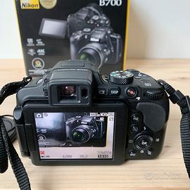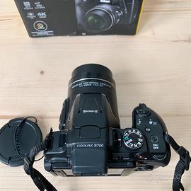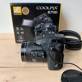 Vendo fotocamera bridge Nikon Coolpix B700 con sensore da 20.2 megapixel, zoom ottico 60x, video in 4k, mirino elettronico e schermo inclinabile. La fotocamera è in ottime condizioni, venduta con scatola, manuale, cavo di ricarica e borsa originale Nikon. Prezzo trattabile