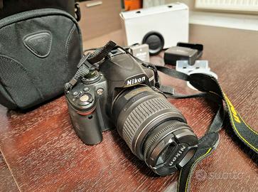 Vendo fotocamera Nikon D3000 completa di obbiettivo AF-S Nikkor 18/55 completa di batteria,carica batterie,cavo,scatola originale e borsa per trasporto.