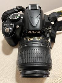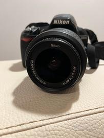 Fotocamera Reflex Nikon D3100 con obiettivo 18/55 mm, batteria e caricabatteria.