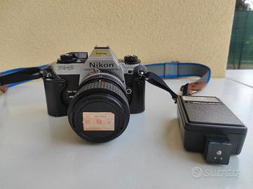 Fotocamera Nikon FG 20 - zoom Nikon 35/70 mm - flash Nikon Speed light SB-E - custodia originale. Provvista di bollino "passed"