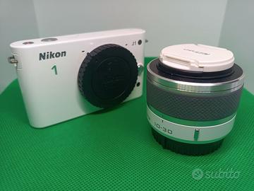Nikon J1 con obiettivo 10-30, 1 batteria originale, 2 batterie, caricabatterie compatibili (nuovi), scatola ed istruzioni. L'obiettivo Nikon NON funziona in automatico, quindi è da riparare o usabile in modalità manuale senza avvitarlo completamente. NO GARANZIA, NO RESI.