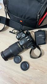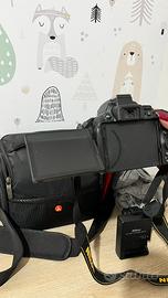 Corpo Nikon + fotocamera + laccetto originale + borsa tre tasche Nikon + caricabatterie + cavo usb + protezione impermeabile