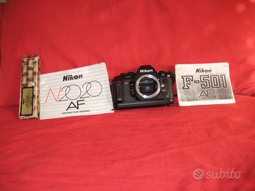 Reflex per pellicola Nikon N2020 AF (Versione Americana della F501 AF) come nuova, con istruzioni in Italiano e Inglese, obbiettivo AF NIKKOR 50mm 1:1.8 + AF NIKKOR 70-210 1:4-5.6 +FLASH DEDICATO ACHIEVER + POLARIZZATORI + FILTRI COKIN + BORSA TAMRAC e altri accessori con due adattatori per pile stilo e ministilo originali Nikon,Vendo per inutilizzo Perfettamente funzionante. € 200