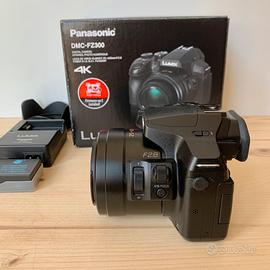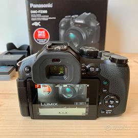 Vendo fotocamera bridge Panasonic Lumix FZ 300 con sensore da 12.1 megapixel, zoom ottico 24x, apertura fissa 2.8, post focus, mirino elettronico, schermo touchscreen inclinabile e video in 4k. La fotocamera è in ottime condizioni. Venduta come in foto, con scatola, caricabatterie, due batterie compatibili e scheda di memoria. Prezzo trattabile