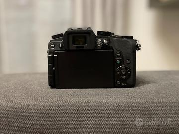 Fotocamera mirrorless micro4/3 LUMIX G7 con obiettivo LUMIX G VARIO 14-42, 3.5-5.6 stabilizzato. Sensore live MOS da 16Mpixel, video in 4k. Schermo OLED da 3". Completa di scatola e accessori originali più 2 batterie PATONA (3 in totale), doppio caricabatterie e alimentatore con dummy battery. Ottimo stato; pochissimi scatti (usata per video).