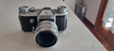 Pentacon F fotocamera per collezzionisti e amatori , prodotta dal 1956 al 1962 , obiettivo Karl Zeiss Jena , mirino Pentaprisma , autoscatto circa 8 secondi , custodia originale ,no urti , no urti , possibilità di ritiro presso il mio domicilio oppure spedizione tracciabile a carico dell'acquirente, pagamento con bonifico.