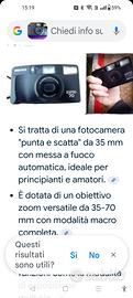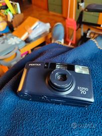 si tratta di una fotocamera a punta e scatta da 35 mm con messa a fuoco automatica ideale per i principianti amatori e dotata di un obiettivo zoom versatile del 35-70 mm con modalità macro completa fa parte della serie Pentax espio IQ zoom include funzioni come la modalità di esposizione Multipla utilizza una batteria CR 123a e può gestire circa 15 minuti di pellicola viene fornita anche una comoda borsa per il trasporto con tracolla.
