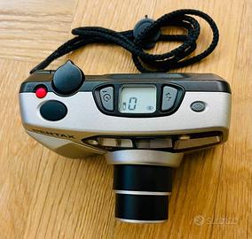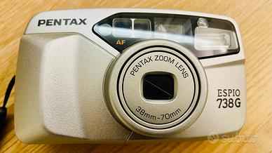 Fotocamera a pellicola compatta Pentax Espio 738G, obiettivo Zoom 38mm-70mm, autofocus, flash integrato con modalità di riduzione occhi rossi, e autoscatto. Ottime condizioni, perfettamente funzionante (come da foto).