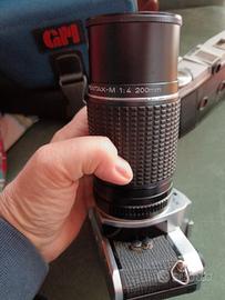 Pentax MX con obiettivo originale 200 mm e zoom seimar 24/70 + borsa