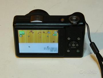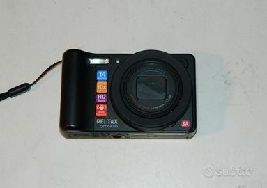 Fotocamera digitale compatta Pentax Optio RZ10. In ottime condizioni e perfettamente funzionante, con due batterie, due memory card e accessori originali. Inclusi: memoria SD Kingston 2 GB, memoria SDHC Lexar 16 GB, cavo AV, cavo USB, cavo AC, 2 batterie Li-ion, caricatore da tavolo, laccetto, custodia rigida, software in CD-ROM e documentazione. -Sensore: 1/2.33’’ CCD -Risoluzione massima: 14 Megapixels (4288x3216) -Video HDTV (1280x720), 30/15fps -Sensitività: Auto, Fissa (ISO 80 - 6400) -Riduzione vibrazione -Lente: 50 mm f/3.2(W) - f/5.9(T) -Zoom: ottico 10x, digitale 6.7x -Focus: normale, macro, super macro, infinito, pan, manuale -Schermo: LCD 2.7’’ (6.86mm) -Memoria: interna. 82.7 MB, esterna SD - SDHC e Eye-Fi wireless -Shutter: 1/2000 - 1/4 sec. max 4 sec. -Flash integrato con funzioni: auto, off, on, auto+red-eye, on+red-eye, soft -Scatto: singolo, temporizzato (2 or 10 sec), continuo (1.0 fps), burst shooting (L/M/H) -Riconoscimento facciale -Filtri: B&W, Sepia, Toy camera, Retro, Colours, Extract colour, Colour Emphasis, High Contrast, Soft, Starburst -Altre funzioni: Video Editing, Slideshow, Image Rotation, Small Face filter, Digital Filter, Frame composite, Movie Edit, Red-Eye compensation, Resize, Cropping, Image / Sound copy, Voice memo, Protect, DPOF, Face close-up playback, Startup image