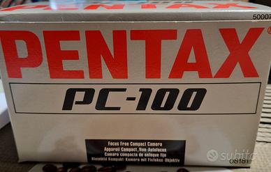 Vendo Fotocamera Pentax PC 100 nuova mai usata in confezione originale prezzo da realizzo . Caratteristiche Tecniche Principali Pentax PC-100: Tipo:Fotocamera compatta 35mm con otturatore a lamelle. Obiettivo:Pentax 35mm f/4.5 (3 elementi in 3 gruppi). Messa a Fuoco:Sistema "Free focus" (fuoco fisso), da 1,5 metri all'infinito. Esposizione:Tempo di scatto fisso a 1/125 sec. Sensibilità Pellicola (ISO):Impostazione manuale per pellicole ISO 100, 200, 400. Flash:Integrato, attivabile manualmente a scorrimento. Copertura: ISO 100 (1.5-3.1m), ISO 400 (1.6-6.3m). Caricamento/Riavvolgimento:Automatico tramite motorino. Alimentazione:2 batterie alcaline da 1.5V formato "AA". Dimensioni:122 x 71 x 47.5 mm. Peso:Circa 190g (senza batterie). La fotocamera è pensata per pellicole a colori o in bianco e nero (non consigliata la diapositiva). Il flash richiede circa 6 secondi per ricaricarsi con batterie nuove.