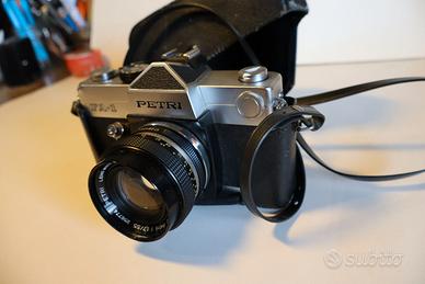 Vendo fotocamera Petri FA-1, reflex 35mm manuale, completa di custodia originale, ideale per appassionati di fotografia analogica e collezionisti. Macchina robusta, compatta e funzionale, perfetta per chi cerca una reflex vintage di qualità.