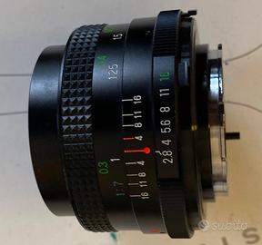 Fotocamera reflex a pellicola Minolta XG-1 con obiettivo 50 mm + grandangolo 28 mm. Modello prodotto fra il 1977 e il 1984